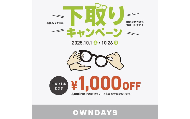 OWNDAYSでは、2025年10月1日(水)〜26日(日)の期間限定で 『下取りキャ ...