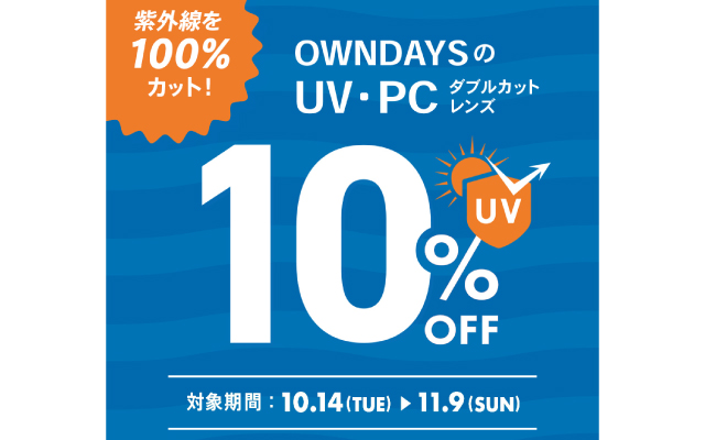 OWNDAYSでは、10/14(火)から11/9(日)までの期間限定で、UV・PCダブルカ ...