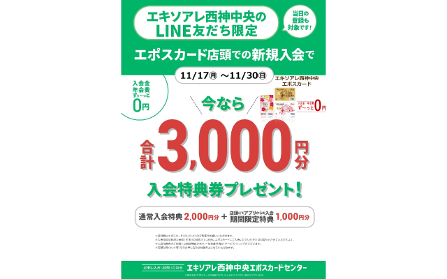 エキソアレ西神中央のLINE友だち限定エポスカード店頭入会キャンペーン