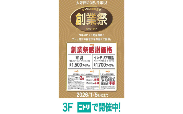 ニトリ58周年記念創業祭を11月28日(金)〜2026年1月5日(月)開催! ...