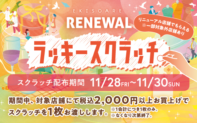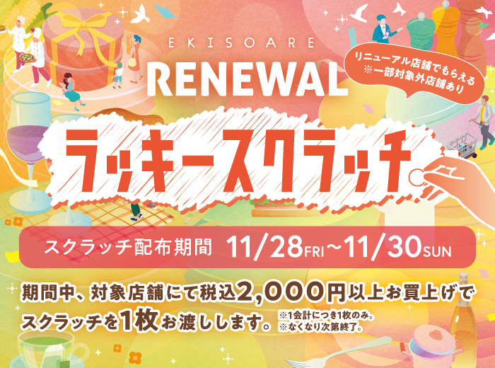 ■スクラッチ配布期間 11/28(金)~11/30(日) 期間中、対象店舗にて ...
