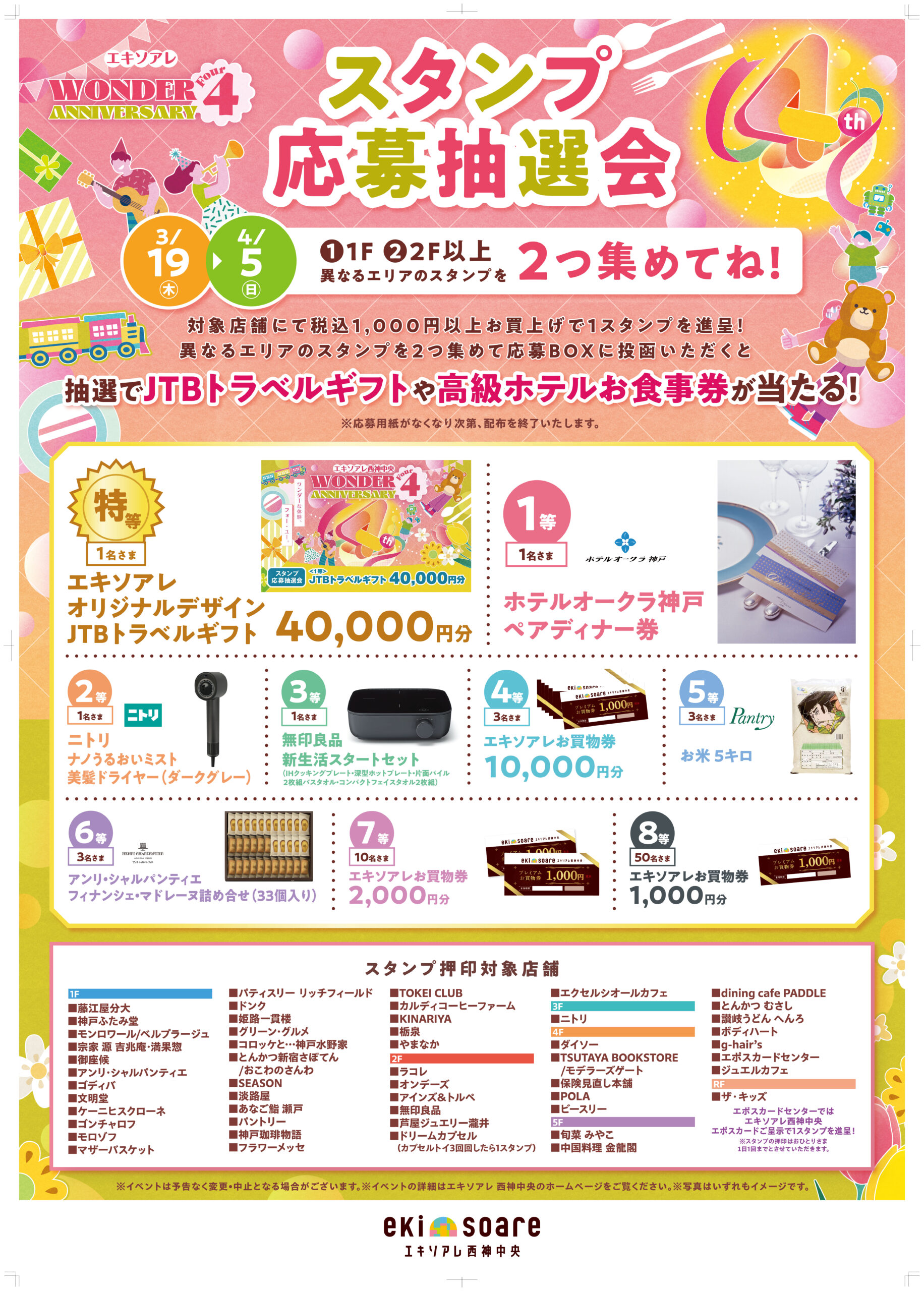 対象店舗にて税込1000円以上お買上げで1スタンプを進呈!