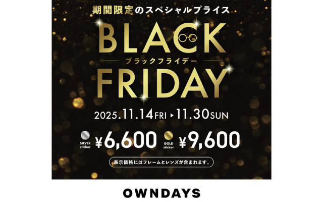 OWNDAYSでは、11月14日(金)から11月30日(日)までの期間、BLACK FRIDAY SALEを ...